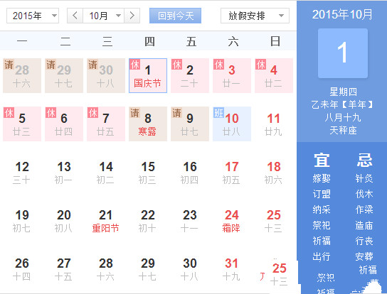 國慶節:- 10月1日至10月7日放假,共計7天;
