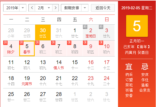 2019年2月1日--2019年2月14日。