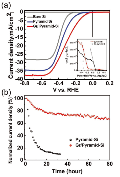 Figure 6.(a)Pt/石墨烯/金字塔Si光陰極的