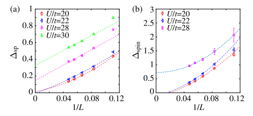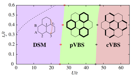 Figure 1. 轉角石墨烯有效格點模型在電中性點隨著團簇電荷相互作用U/t的相圖。。