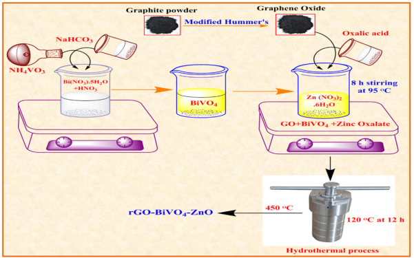 4加載到ZnO上,光子誘導的電子-空穴對的重組減少。三元納米復合材料rGO-BiVO