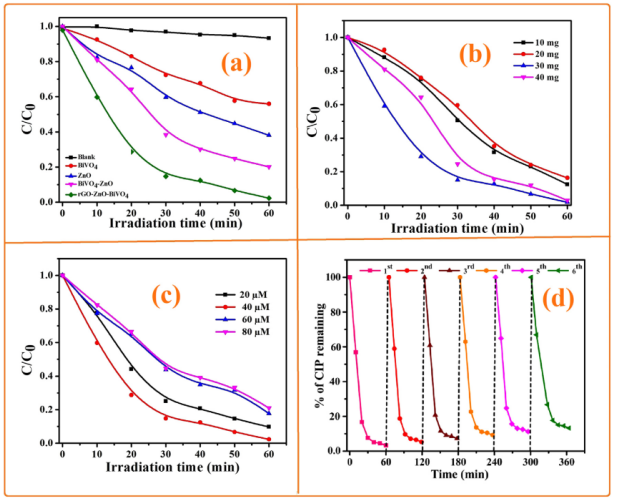 4-ZnO;(c)不同濃度的環丙沙星;(d)存在rGO-BiVO