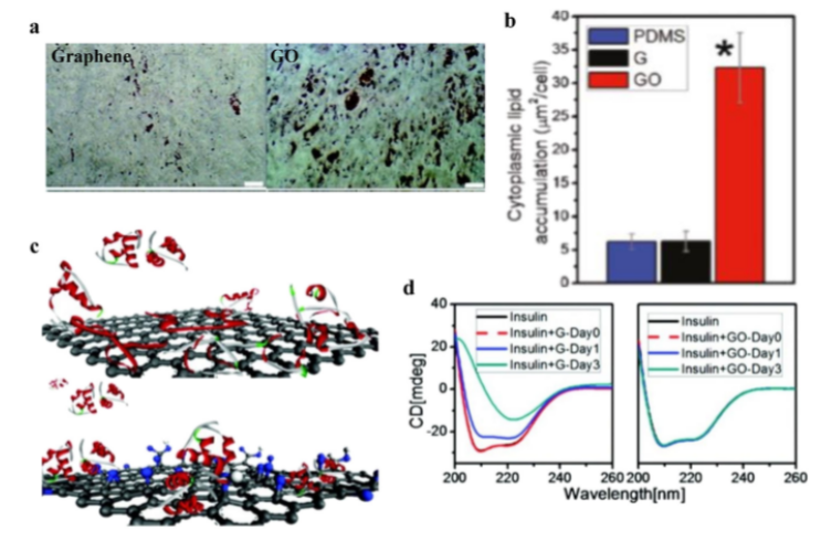 Fig. 4 氧化石墨烯化學影響蛋白質形態和細胞反應。