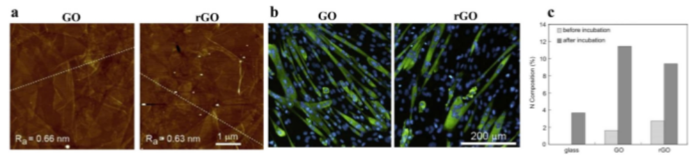 Fig. 5 石墨烯和RGO基底化學影響蛋白質吸附和細胞反應。