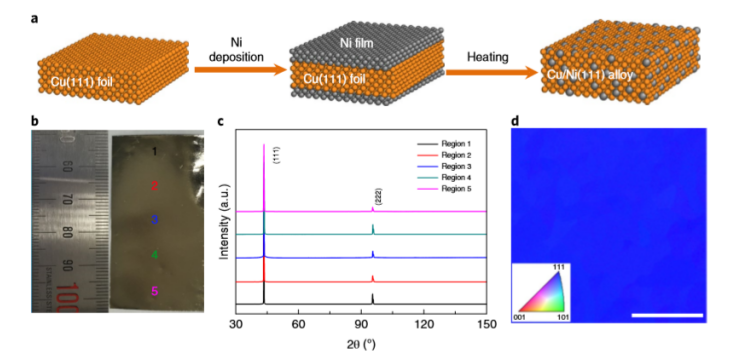Fig. 1 Cu/Ni(111)箔的制備與表征。