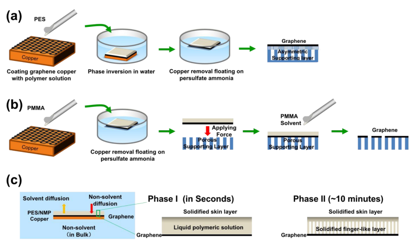 原文:Direct growth of a porous substrate on high-quality graphene via in situ phase inversion of a polymeric solution