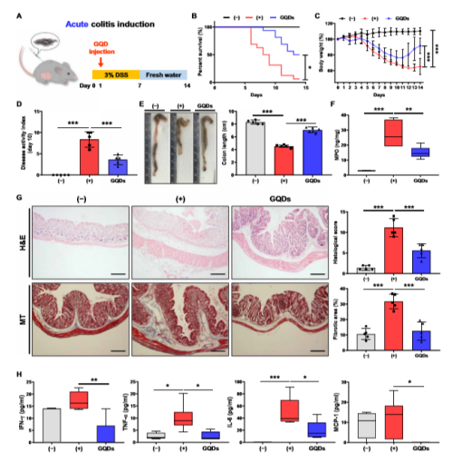 Fig. 2. 腹膜內注射GQDs可抑制DSS誘發的小鼠急性結腸炎。