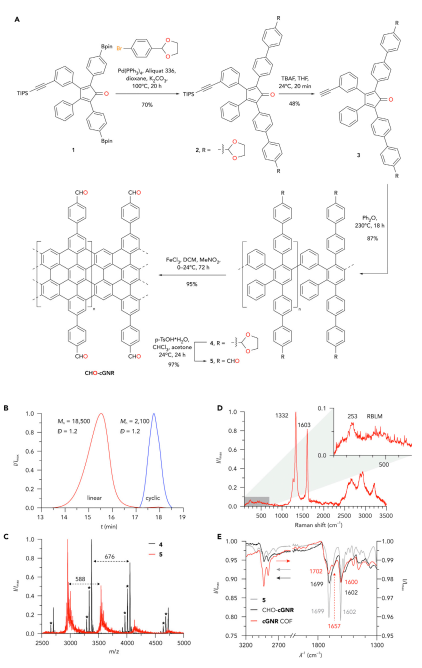 2)雙層和三層cGNR-COF膜。擴(kuò)展的一維材料到晶體COFs的功能集成極大地?cái)U(kuò)展了結(jié)構(gòu)的復(fù)雜性,并通過網(wǎng)狀自下而上的方法獲得了機(jī)械和物理材料特性的范圍。