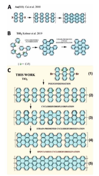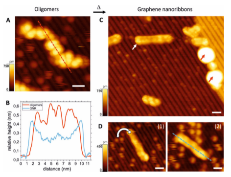 Fig. 2. 低聚蒽酮轉(zhuǎn)化為石墨烯納米帶。