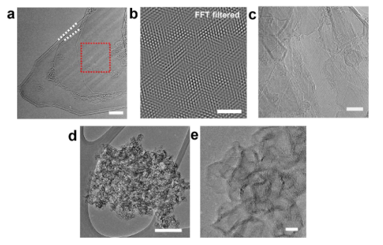 Figure 2. FJH產物的微觀形貌表征。包括TEM圖,FFT變換圖,以及HRTEM圖。