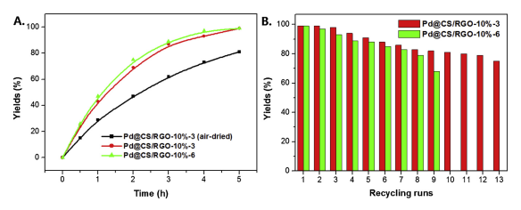 紹興大學Minfeng Zeng課題組--多孔殼聚糖/還原氧化石墨烯微球負載Pd納米粒子催化劑的制備及其在Heck偶聯反應中的應用