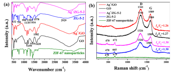 Figure 4.所制備樣品的(a紅外光譜和(b)拉曼光譜。