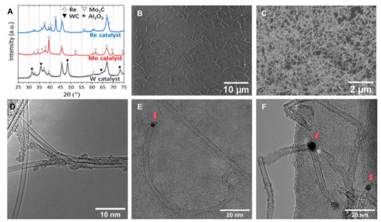 盡管單壁碳納米管在性能和應用上有很大的優勢,但其較窄的手性分布直接生長仍然難以實現。納米顆粒催化劑對于SWCNT乃至更廣泛的納米材料合成至關重要,但對其效果的了解有限。固體催化劑有望實現手性控制生長,但較差的粒度控制和合成效率會阻礙其進展。在這里,我們演示了具有近單分散尺寸的難熔金屬納米粒子(W,Mo和Re)的首次合成。可以在單個過程中產生并還原高濃度(N=105至107 cm
