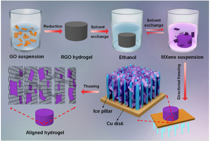 Figure 1. A-RGO/MX混合水凝膠的制造示意圖。