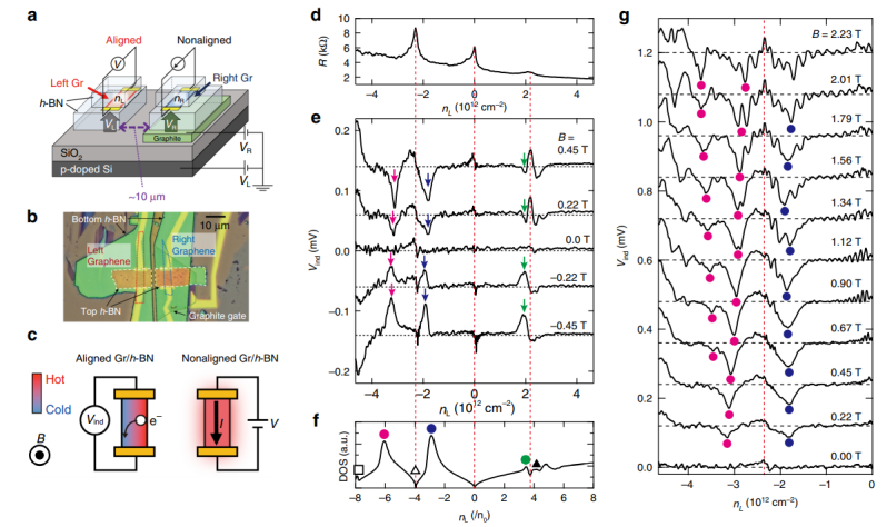 Fig. 2 石墨烯/h-BN莫爾超晶格的磁熱電測量。