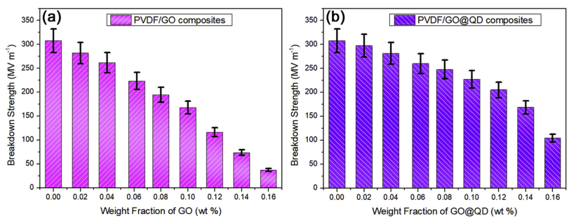 Figure 5. (a)二元和(b)三元復合材料的擊穿強度。