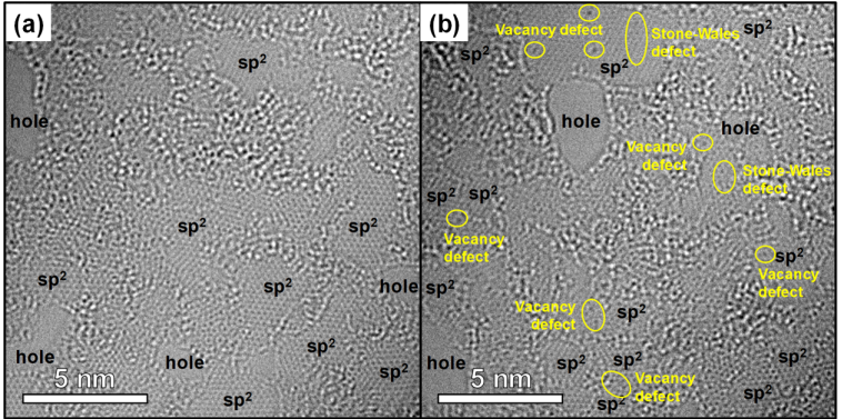 Figure 3. mrGO(a)和mrGO-600(b)的HR-TEM圖像。熱處理將sp