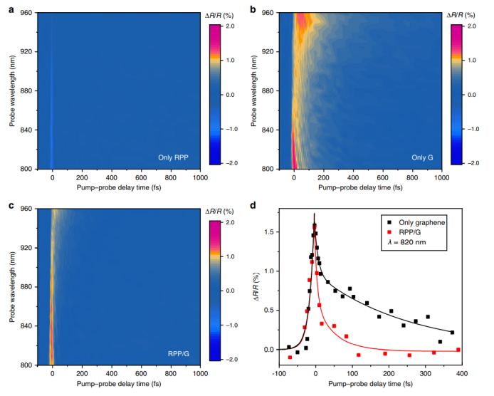 Fig. 4 飛秒泵浦探針研究跨RPP / G異質(zhì)結(jié)構(gòu)的動態(tài)光載流子注入。