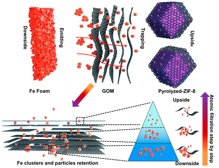 單原子催化劑(SACs)作為一種杰出的催化劑已經引起了廣泛的關注,構成了一系列吸引人的催化反應性能。本文中,開發了一種簡單而巧妙的策略,用于在氧化石墨烯膜(GOMs)的輔助下,在固體擴散過程中通過原子過濾來制造SACs。首先,在熱處理的驅動下,Fe物種(原子、團簇或顆粒)通過GOM擴散的Fe泡沫中散發出來。通過精心調制GOM的層數及其層間間距,GOM可以排除Fe物種的簇和顆粒。因此,可滲透的單個Fe原子被有缺陷的富N位點捕獲,從而生成了孤立的Fe位點催化劑(Fe SAs/N-C)。制備的SACs對氧還原反應(ORR)表現出優異的催化性能。此外,可以輕松擴展此策略以準備其他SACs,例如Co SAs/N-C和Ni SAs/N-C。
