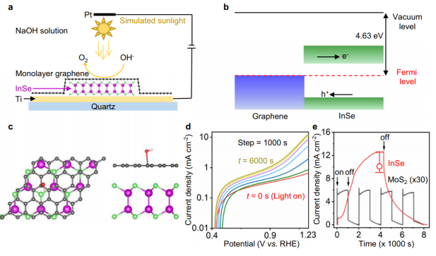 相關研究成果于2020年由廈門大學Yang Cao課題組,發表在Nature Communication (https://doi.org/10.1038/s41467-020-20341-7)上。原文:Atomically thin photoanode of InSe/graphene heterostructure。