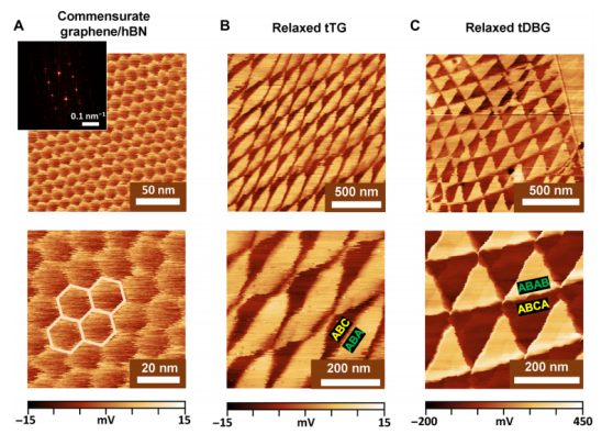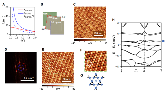 Fig. 4 tDBG/hBN中類似Kagome的莫爾條紋的超結(jié)構(gòu)。