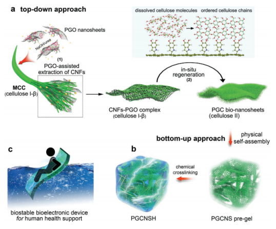 Figure 2. 以PGO為模板的纖維素原位再生,用于形成PGC生物納米片。