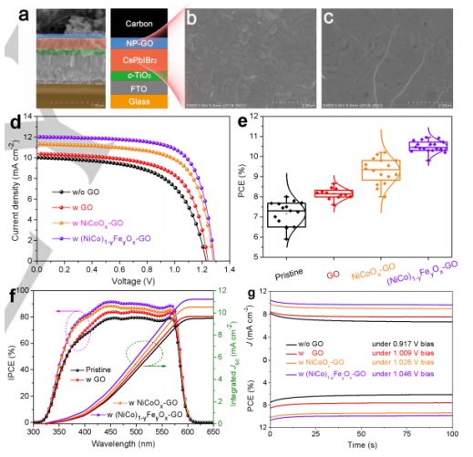 x納米顆粒修飾的氧化石墨烯(GO)已成功地證明是不含貴金屬電極的全無機CsPbIBr