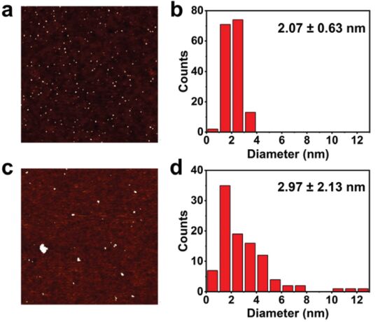 3/GO催化劑前體的(c)AFM圖像和(d)相應直徑分布。