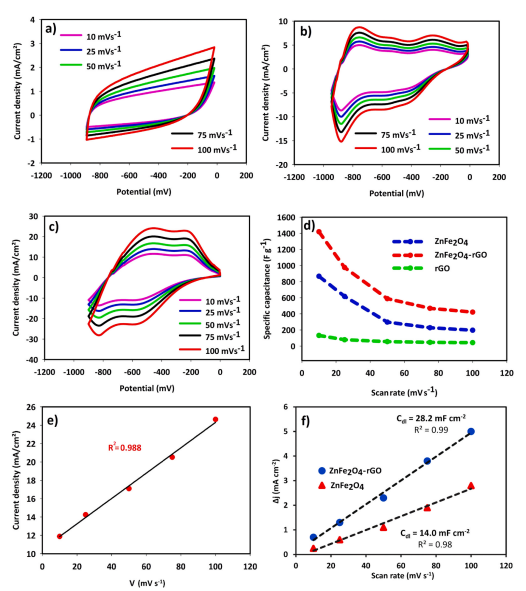 二元過渡金屬氧化物(BTMOs)是活性材料,由于其較高的理論容量,因此有可能成為超級電容器材料。在本文中,以裸露形式和混合形式對基于鋅和鐵的BTMO進行了實驗研究,即還原氧化石墨烯(rGO)上的ZnFe