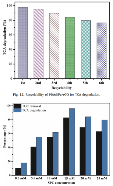 3+物種的豐富可用性。PDA@Fe/rGO納米復合材料增強的修復能力和改進的可回收性可為地下水中三氯乙酸的實際應用提供閃耀的新星。