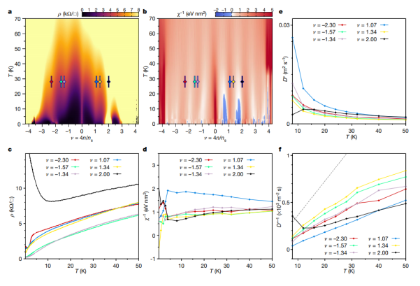 Fig. 4 奇異金屬狀態下MATBG的電阻率、電子壓縮系數和擴散系數。