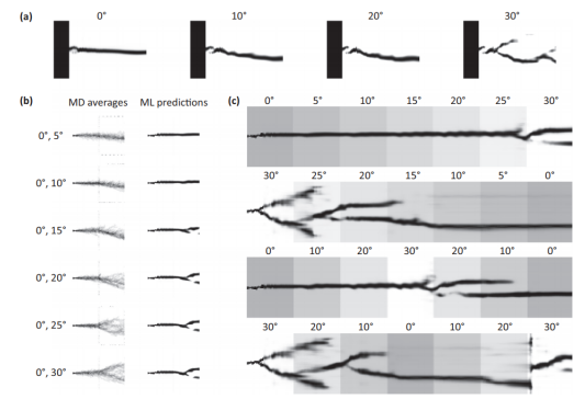 了解斷裂對于彈性納米材料的設計至關重要。分子動力學提供了一種在原子水平上研究斷裂的方法,但是由于可擴展性的限制,計算量很大。在這項工作中,作者建立了預測納米斷裂機制的機器學習方法,包括裂紋不穩定性和作為晶體取向函數的分支。將重點放在與技術相關的特定材料系統石墨烯上,并將深度學習方法應用于此類納米材料的研究,并探索將機器學習預測校準為有意義的結果所必需的參數空間。該結果驗證了深度學習方法能夠定量捕獲石墨烯斷裂行為(包括其分形維數與晶體取向的函數)的能力,并為深度學習在材料設計中的廣泛應用提供了希望,從而為其他2D材料打開了潛力。