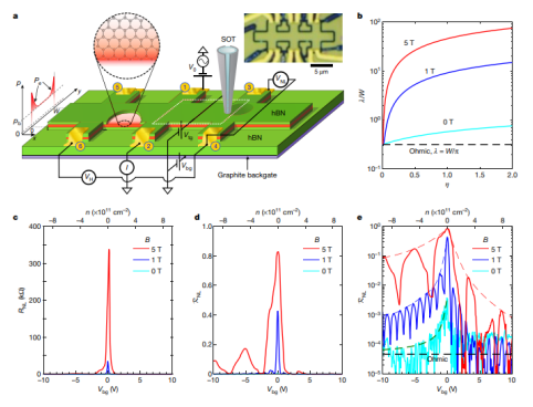 范德瓦爾斯異質結構具有許多獨特的電子性質。非局部測量,即在遠離預期經典載流子流的接觸處測量電壓,已廣泛用于尋找新的輸運機制,包括無耗散自旋和谷輸運拓撲電荷中性流體動力流和螺旋邊緣模式。已經發現單層、雙層、少層石墨烯、過渡金屬二鹵化物和莫爾超晶格顯示出明顯的非局部效應。然而,這些效應的起源仍存在激烈的爭論。特別是石墨烯,在電荷中性時表現出巨大的非定域性,這一驚人的行為吸引了其他不同的解釋。鑒于此,作者利用尖端的超導量子干涉裝置(SQUID-on-tip)進行納米尺度的熱成像和掃描柵成像,證明了石墨烯邊緣常見的電荷積累會導致巨大的非定域性,產生支持長程電流的狹窄導電通道。出乎意料的是,邊緣電導雖然對零磁場下的電流流動影響不大,但在中等磁場下會導致邊緣和體輸運之間的場致解耦。在電荷中性處以及遠離電荷處所產生的巨大的非定域性會產生對邊緣無序敏感的奇異流動模式,其中電荷可以逆著全局電場流動。觀測到的一維邊緣輸運是通用的和非拓撲的,預計將支持許多電子系統中的非局部輸運,揭示了許多有爭議的觀察結果,并將它們與系統邊緣上的遠程引導電子態聯系起來。