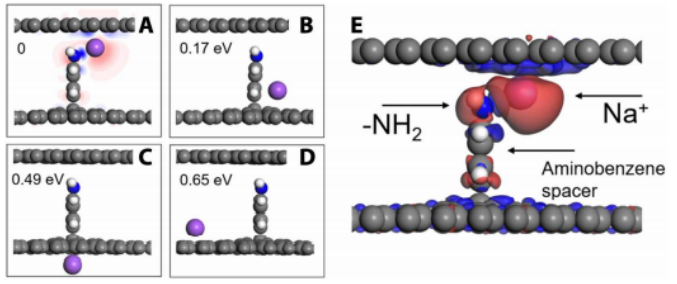 +的方式不同于石墨和堆疊石墨烯。密度泛函理論計算表明,Na
