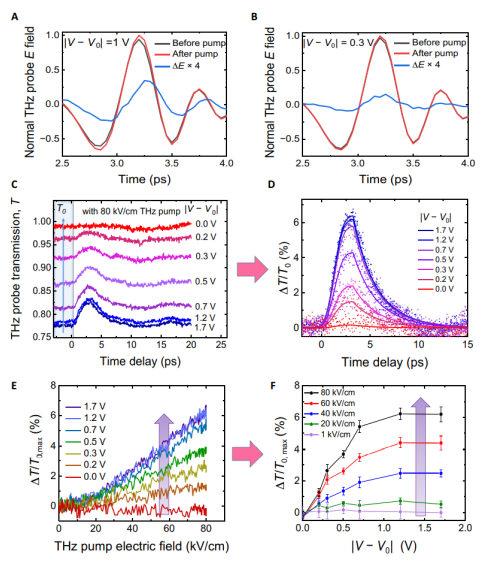 Fig. 3. 太赫茲場誘導(dǎo)的 SA 與 TPTP 光譜顯示的門控電壓的關(guān)系。