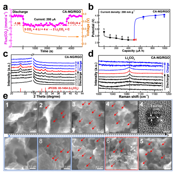 Figure 4. Li-CO2電池中CA-NG/RGO正極的電化學反應機理。