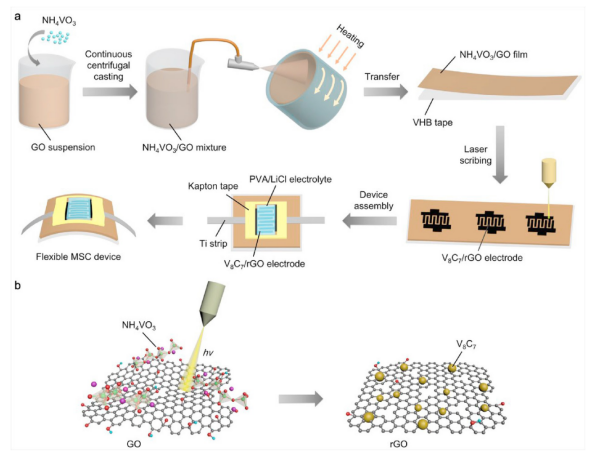 3/GO)薄膜,再通過激光刻劃來制備碳化釩/還原氧化石墨烯(V