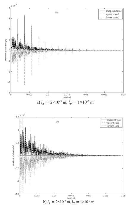 將石墨烯薄片的小尺度參數視為不確定參數,基于非局部理論建立了含不確定參數的簡支石墨烯薄片振動方程。利用三角函數級數解和區間算子得到了簡支石墨烯薄片響應的上下界。研究了不同維數下響應的不確定度。數值結果表明,同樣不確定性程度的小尺度參數,響應的不確定性水平將隨著石墨烯薄片維度的增加而減少,。在小尺度效應消失之前,小尺度參數的小不確定度會導致較大的不確定性的響應。