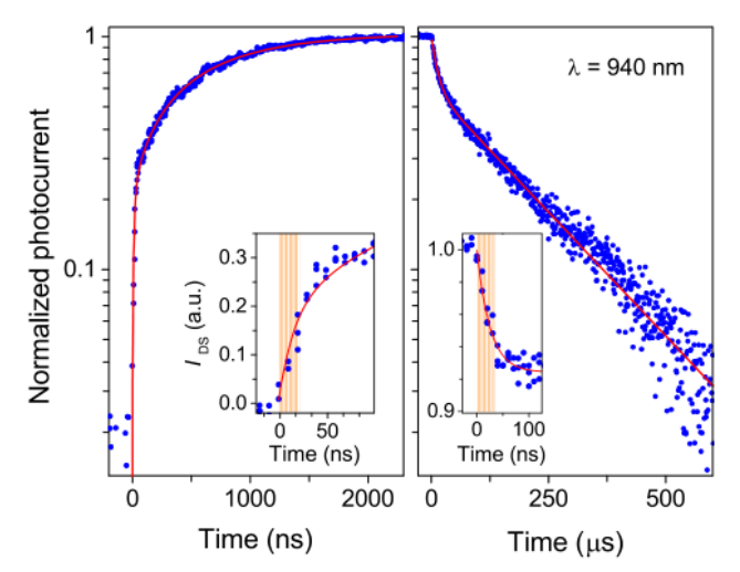 圖3。940nm激光脈沖激勵下混合硅/鍺光電探測器的時間響應。