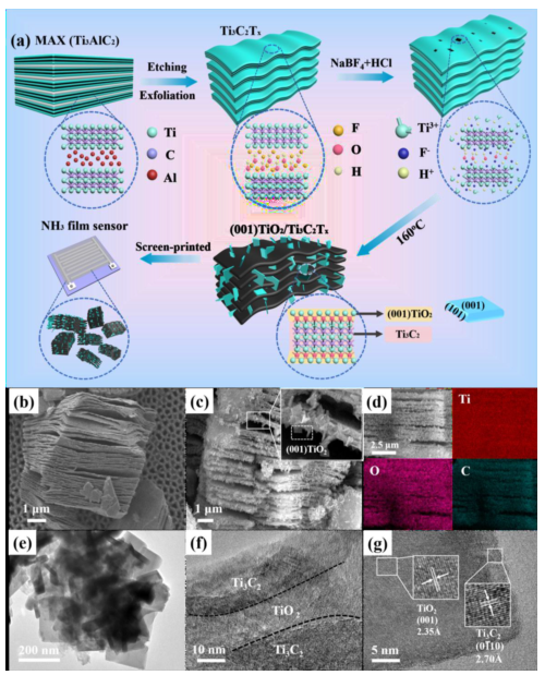 氨已被用作指示食品變質程度的重要標志。然而,目前氨氣傳感器的靈敏度和選擇性不足,自動化水平不理想,阻礙了其在食品質量現場實時監測中的實際應用。為了克服這些局限性,我們提出了在二維過渡金屬碳化物(Ti