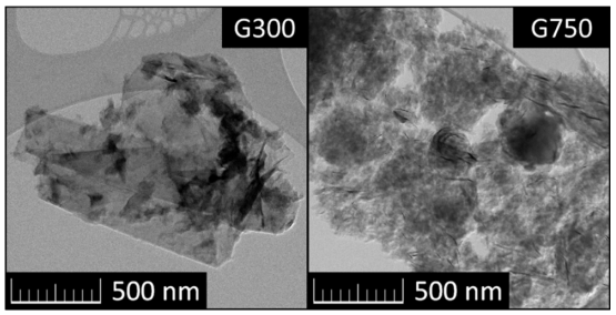 圖2. G300和G750的透射電鏡(TEM)顯微照片。