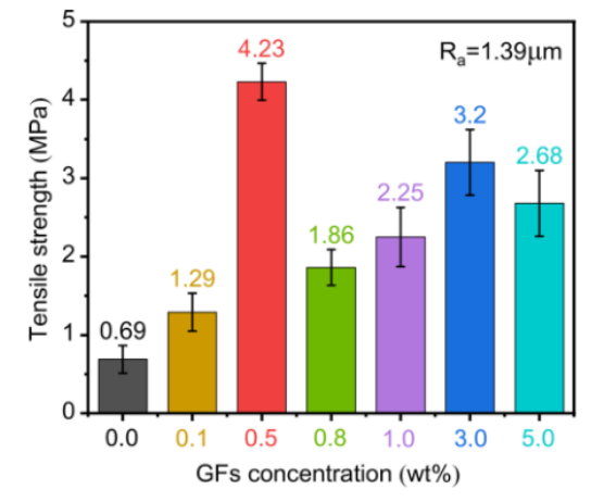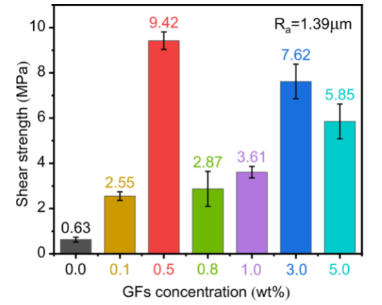 圖4. 與GFs濃度相關的搭接剪切強度。