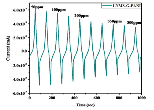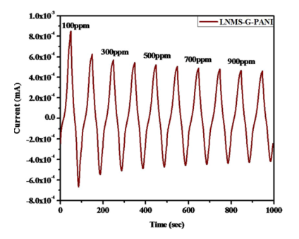 2-G-PANI(LNMS-G-PANI)樣品的電流變化。