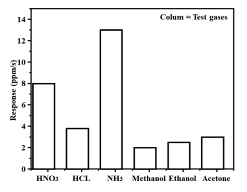 2-G-PANI(LNMSG-PANI)的傳感器在25°C時對各種氣體的響應。