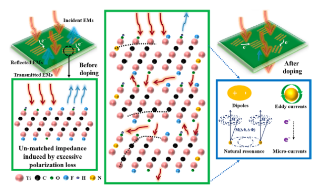 x MXene和氮摻雜產物的微波吸收機理的示意圖。