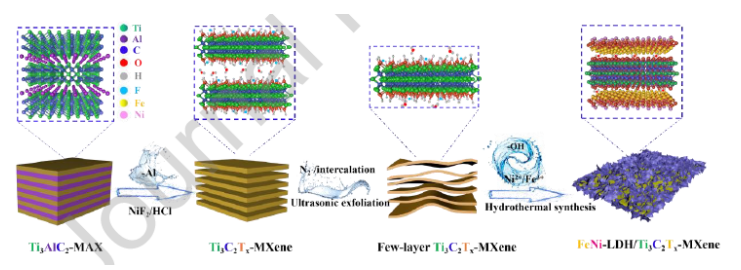 x的MXene納米片上,從而開發(fā)出層次納米雜化。FeNi-LDH陣列與Ti
