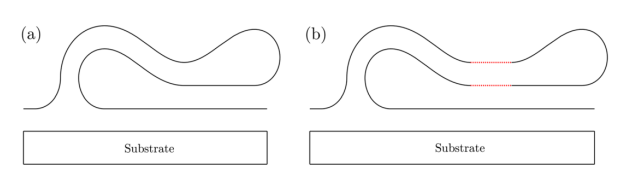 圖2. 折皺的兩種潛在構(gòu)象的結(jié)構(gòu)圖示:(a)構(gòu)象A和(b)構(gòu)象B,與折疊的雙分子層的距離分別為零和非零。