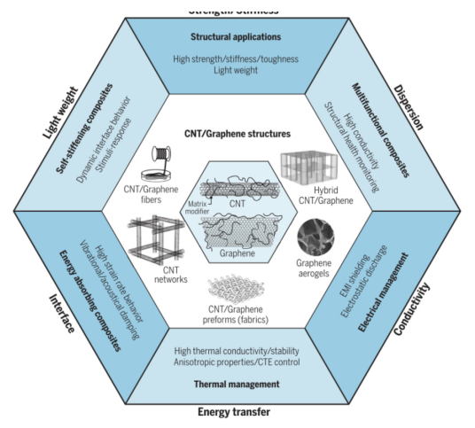 圖11. 總結了各種MWCNT和GNP復合材料的示意圖,這些復合材料具有預期的增強性能可用于未來的應用,以及六個關鍵參數。