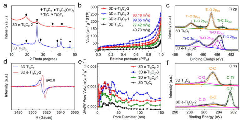 2的電子順磁響應(EPR)譜。(e) 3D Ti