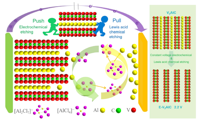 在Lewis酸性熔鹽中室溫下實現(xiàn)了MXenes的無氟、無水電化學制備。此外,研究了MAX相V